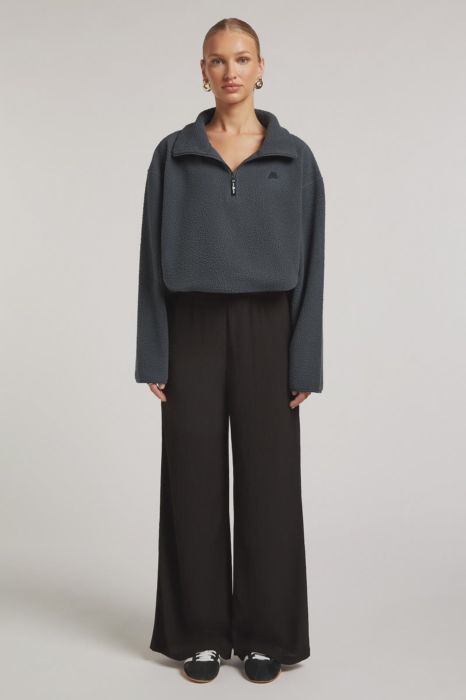 High neck, light-weight half-zip fleece. Designed to be the perfect layering piece. Breathable fabric whilst being the perfect option to keep you warm. Drawstring waist to allow you to fit it to your desired length. Can be worn full-length or cropped.